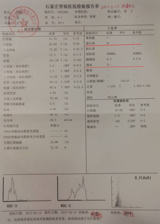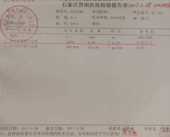中医治疗15天后,复查蛋白竟然也降的让人兴奋,蛋白从4+降到了+ -、潜血转阴,24小时尿蛋白定量降到了0.89g,蛋白整整下降了13g。