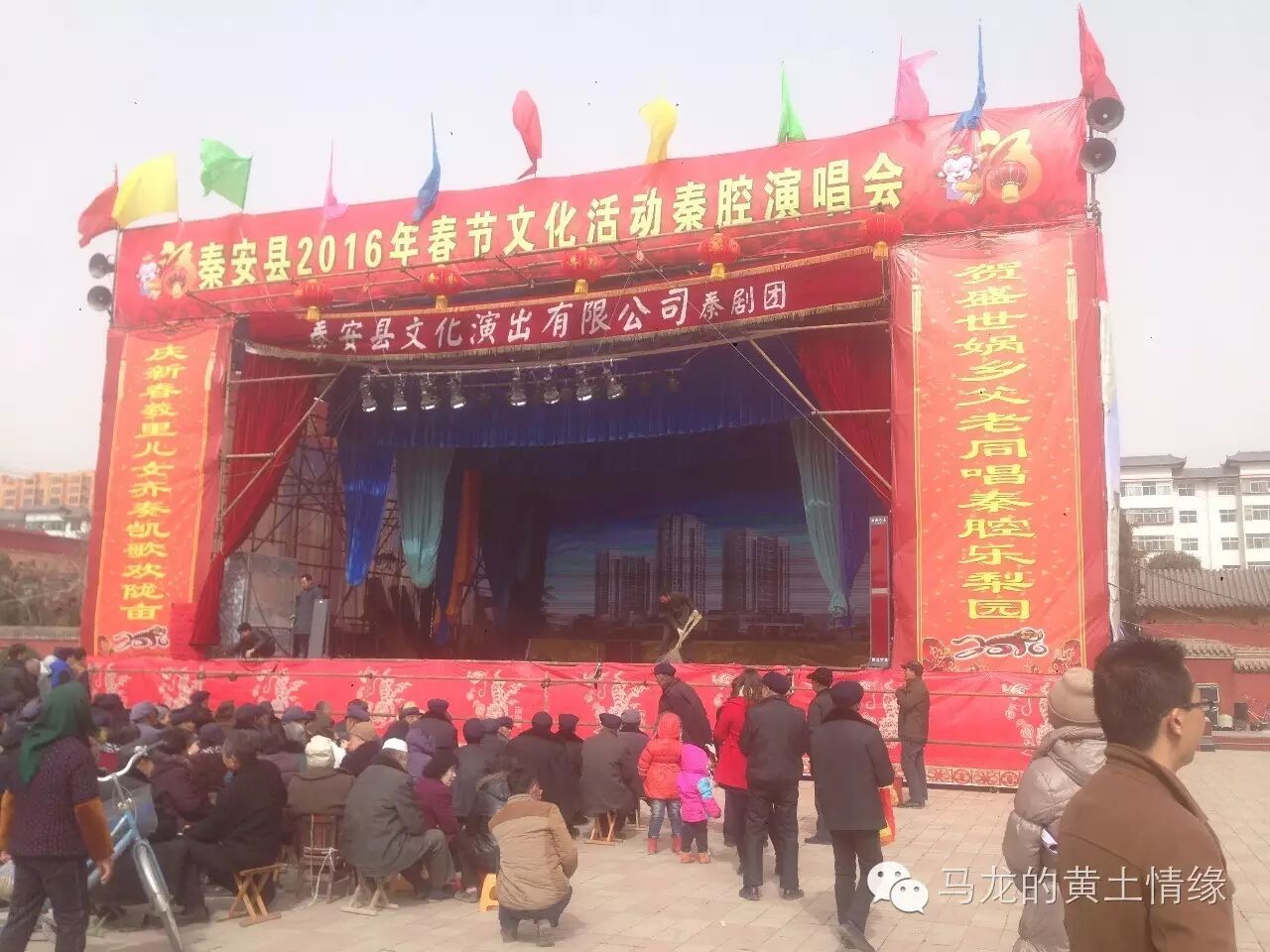 曾记得上小学时,贫穷落后的山区学校里没有一个懂音乐或艺术的老师,不会教娃娃们唱歌跳舞,但他们个个都会唱戏。因此在属于孩子们的节日里,几个村小学就会聚在一起比唱秦腔。对于十岁左右的娃娃来说,戏袍实在太长,需打几个折才能勉强穿到身上,靴子太大,要提前扎紧靴口方可登台。打奏乐器的全是老师,也不分你村我村,所有老师都上台,真正做到了师生同台同庆。或许秦腔的群众基础就在这时已深深地打下了,根深蒂固驻扎在黄土高原每个娃娃的心里。