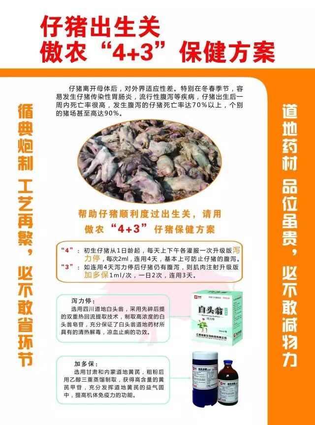“3”:如连用4天泻力停后仔猪仍有腹泻,则肌肉注射升级版“加多保”1ML/次,一日2次,连用3天。