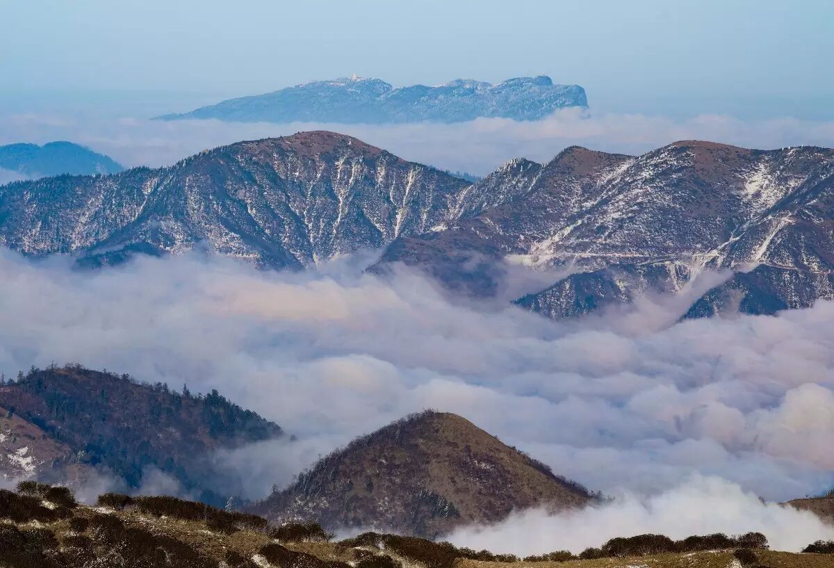 (从轿顶山远眺峨眉,重峦叠嶂,摄影师黄牛)