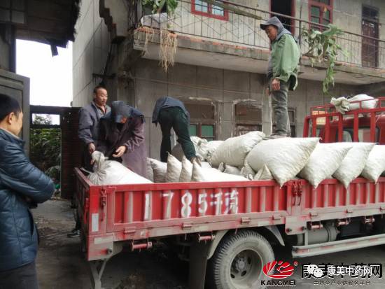 打包好的川芎正在上车
