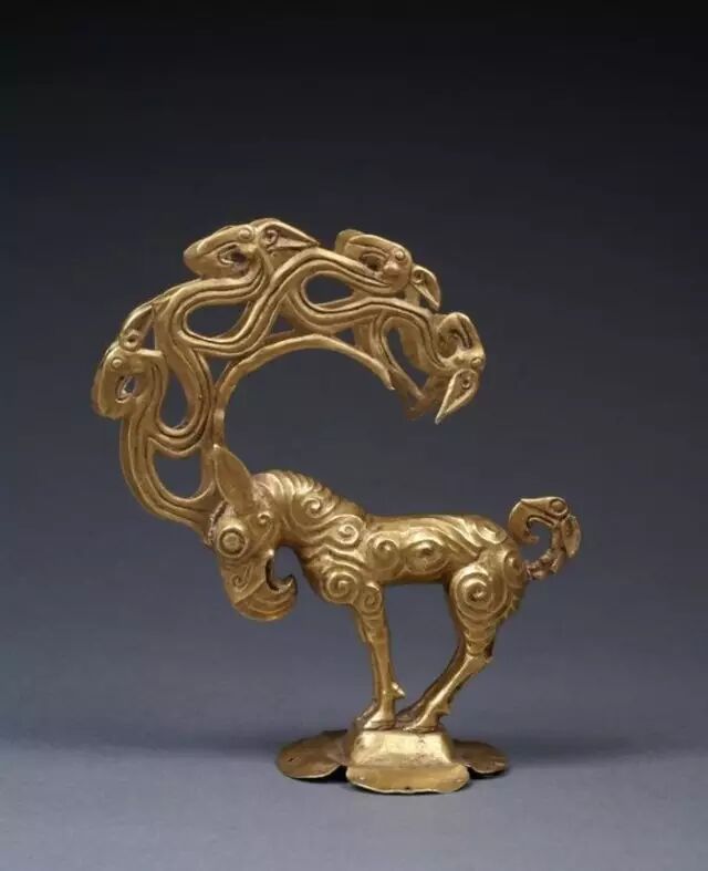 这属于鹰首鹿式的格里芬,其鹿角和尾部都是由神鹰式的鸟首而变形。其年代可能相当中原地区的战国晚期。