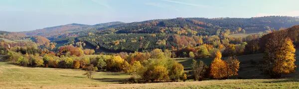 越石而过,有一处狭长的草坪,坐在草坪上短憩,隔河望去,黄河流域与长江流域的分水岭横亘天际,怀里搂着她的山子山孙们,野也野得婉约,柔也柔得自然。我的目光来不及游弋,便被山上雍容华贵的秋林摄去了。