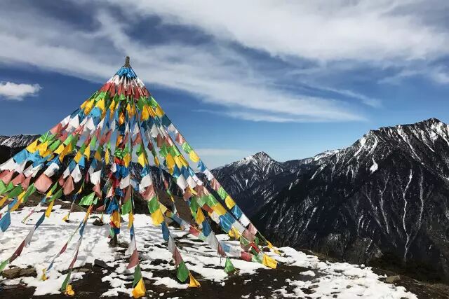 经幡猎猎,乱云飞舞,雪山巍峨。