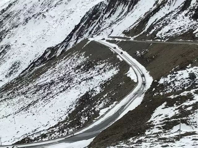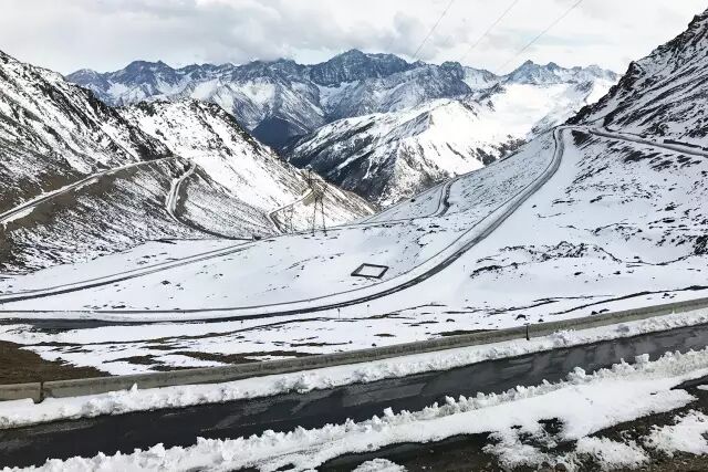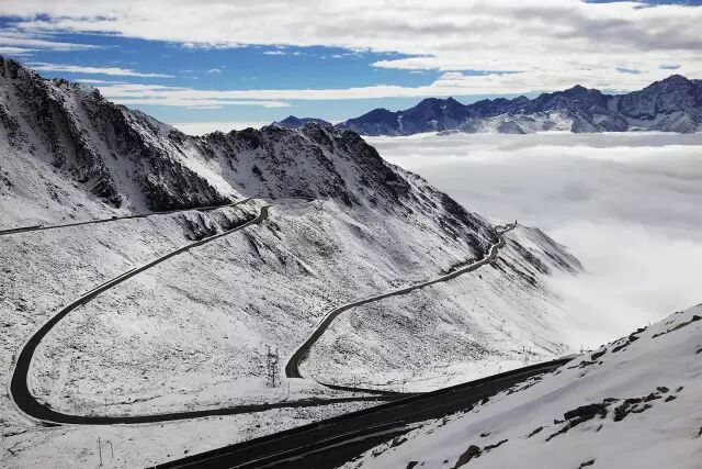 3月19日,车友「雪域之船」在返回金县的路上,便被雪山风光吸引,一时兴起,决定从巴郎山隧道走老路翻越垭口,再次领略雪山巍峨风光。
