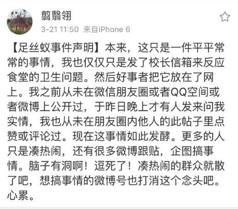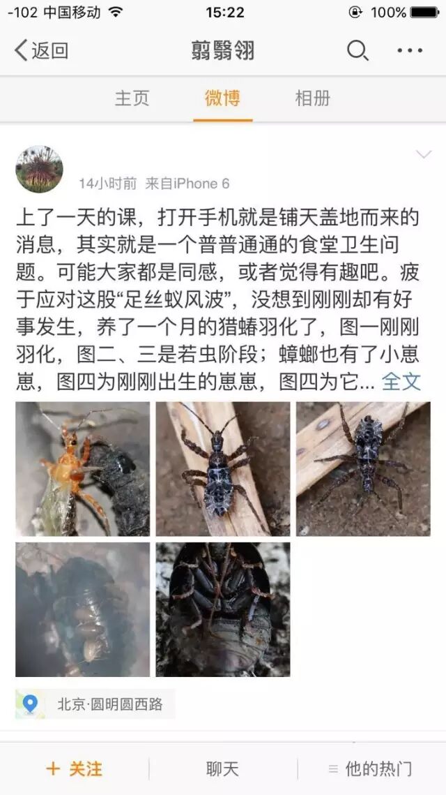 小编注意到,这位质疑食堂卫生问题的小哥哥还是该校昆虫爱好者协会的会长。