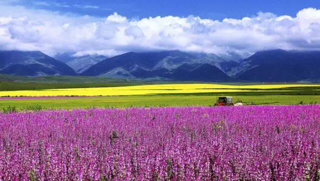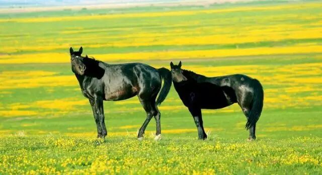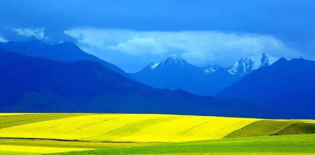而昭苏是新疆唯一一个没有戈壁,没有沙漠的县。天山山脉下的边陲小县,处处充满生机、活力。美丽的雪山,辽阔的大草原,蓝天白云,满山遍野的牛羊,还有奔腾的昭苏骏马。油菜花到处盛开之时,满眼尽是大美。