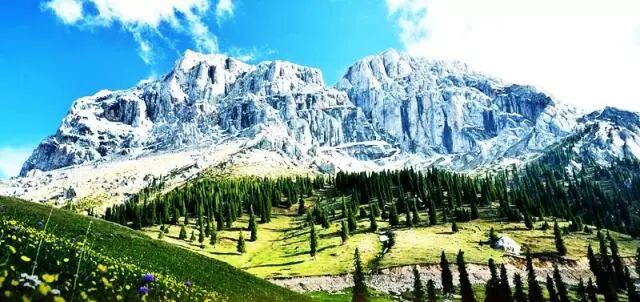 有人说,走独库公路,你会体验到一种“从火焰到海水”的心理历程。的确,自天山南麓的“火焰地带”之后,接着就是陡峭的岩壁、绿色的草、芳香的野花、凋零的松树、高耸的雪山,还要跨越天山山脉的十条河流在这里流过。