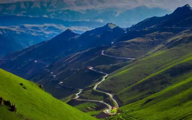 它还是古代丝绸之路“弓月道”的其中一段,被喻为新疆最险峻且风景优美的公路之一。全程100多公里,沿途要翻越海拔3000米的乌孙山上的安格列特达坂,山石峭壁连连,之间的高山草场却鲜花蔓蔓,可以到达“天马之乡”的昭苏。