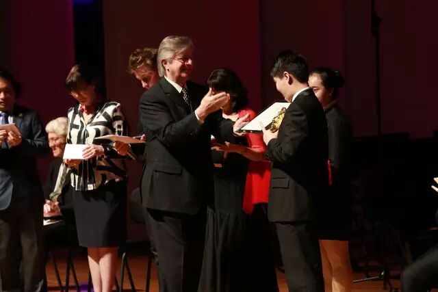 本届比赛组委会主席、艺术总监、中央音乐学院院长俞峰教授为获得青年组冠军的选手陈学弘颁奖。