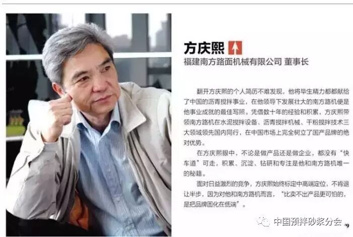 实际上,一手创办并执掌南方路机25年的方庆熙,早就为此定下了一个可以量化的目标:“在包括沥青、干混砂浆、整形制砂在内的各个细分搅拌设备领域,成为数一数二的品牌。”