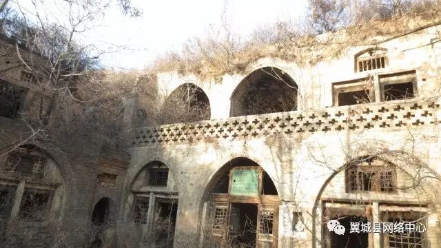 早在1736年,沟南坡就住着姓葛的人家,起初只有两孔窑洞,家境贫寒,但葛家之子从小就很懂事,学习特别勤奋,后来考取了状元,在朝里刑部做官。为官多年,先后娶七房妻室,传说后来因为怠误朝政,皇上下令处斩并灭九族。听说葛府四夫人素有闭花羞月之貌,琴棋书画俱佳,皇上于是下诏进宫面圣。果然不同凡响,皇上怜貌爱才,于是又下一道密旨,派人遣送其返乡,这样,葛家四夫人就住回到葛南坡的土窑洞里。四夫人在葛南坡独自生活了五年,遇到山东一个叫阎沛的,一担挑只身一人流落于此,两人一见如故,于是阎沛落脚葛家,开始生儿育女,繁衍生活。经过几代人的辛勤努力,一座规模宏大,气势雄伟的庭院依山势落成。庭院东西又建了两个小院落,住着阎沛的后代。每每清明上坟,阎氏后人都要祭拜葛氏先祖,感谢葛家的知遇之恩,也为后人留下了“葛阎一家亲”的感人故事。如今的阎家大院杂树丛生,老砖残瓦遍地,北楼敞开的三眼窑洞里,凌乱扔放着骑马用的两套鞍具;还有当地人唤作简简佩子的用来盖水瓮面盆的盖子;还有纺花车子,织布机子,都破损得不忍心看……