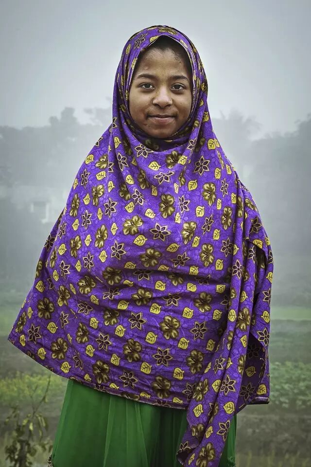 2016年1月10日,在孟加拉的巴依特穆卡拉姆回教堂边上的村庄里,晨雾中去祈祷的女孩。项晴 摄