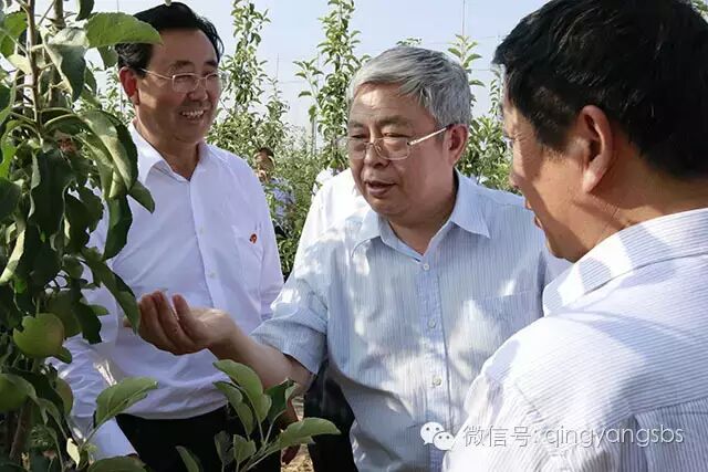 7月5日,国务院扶贫办主任刘永富在宁县产业扶贫现代农业示范区调研“海升”苹果栽植情况。(记者 何海峰 摄)