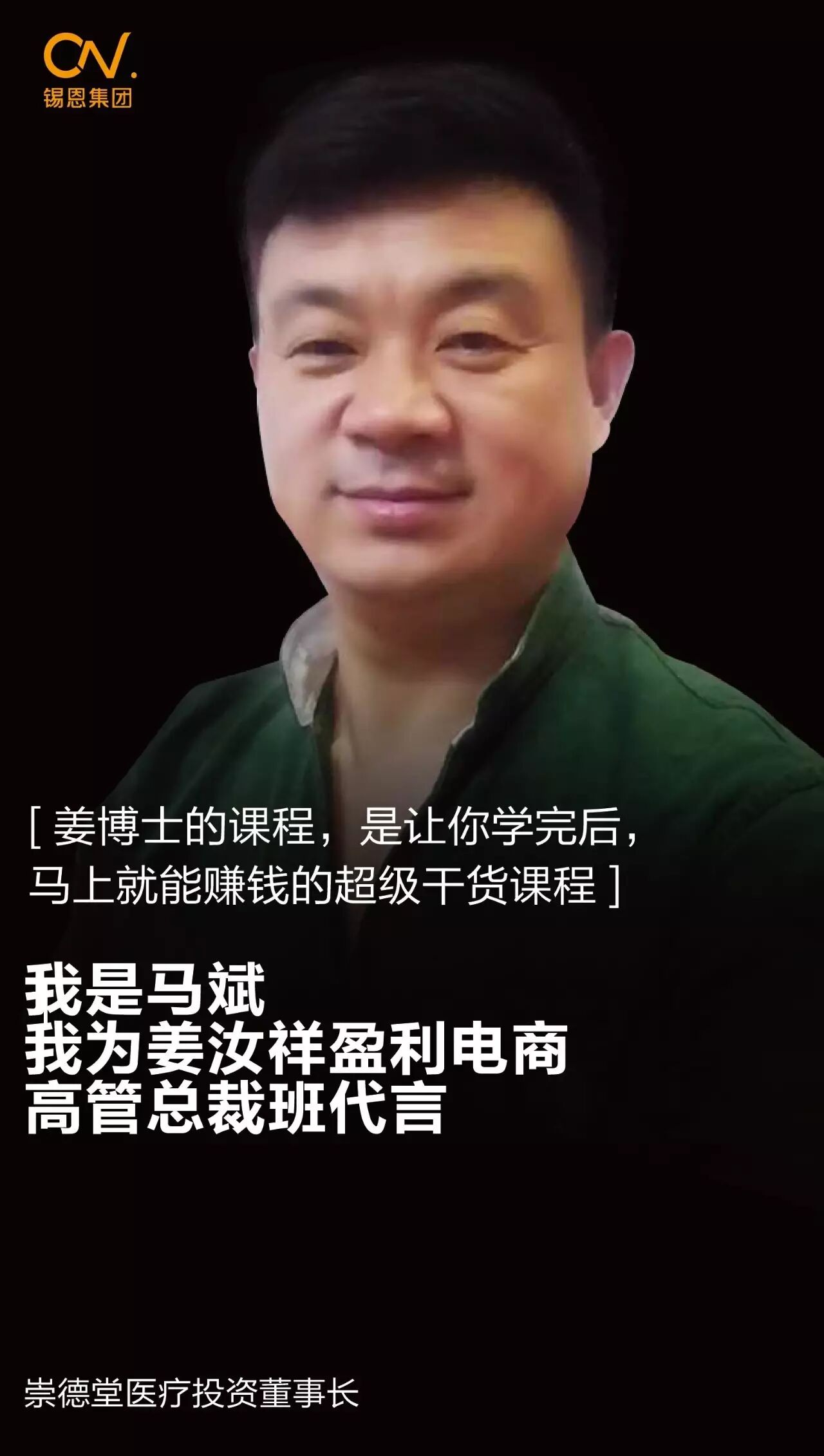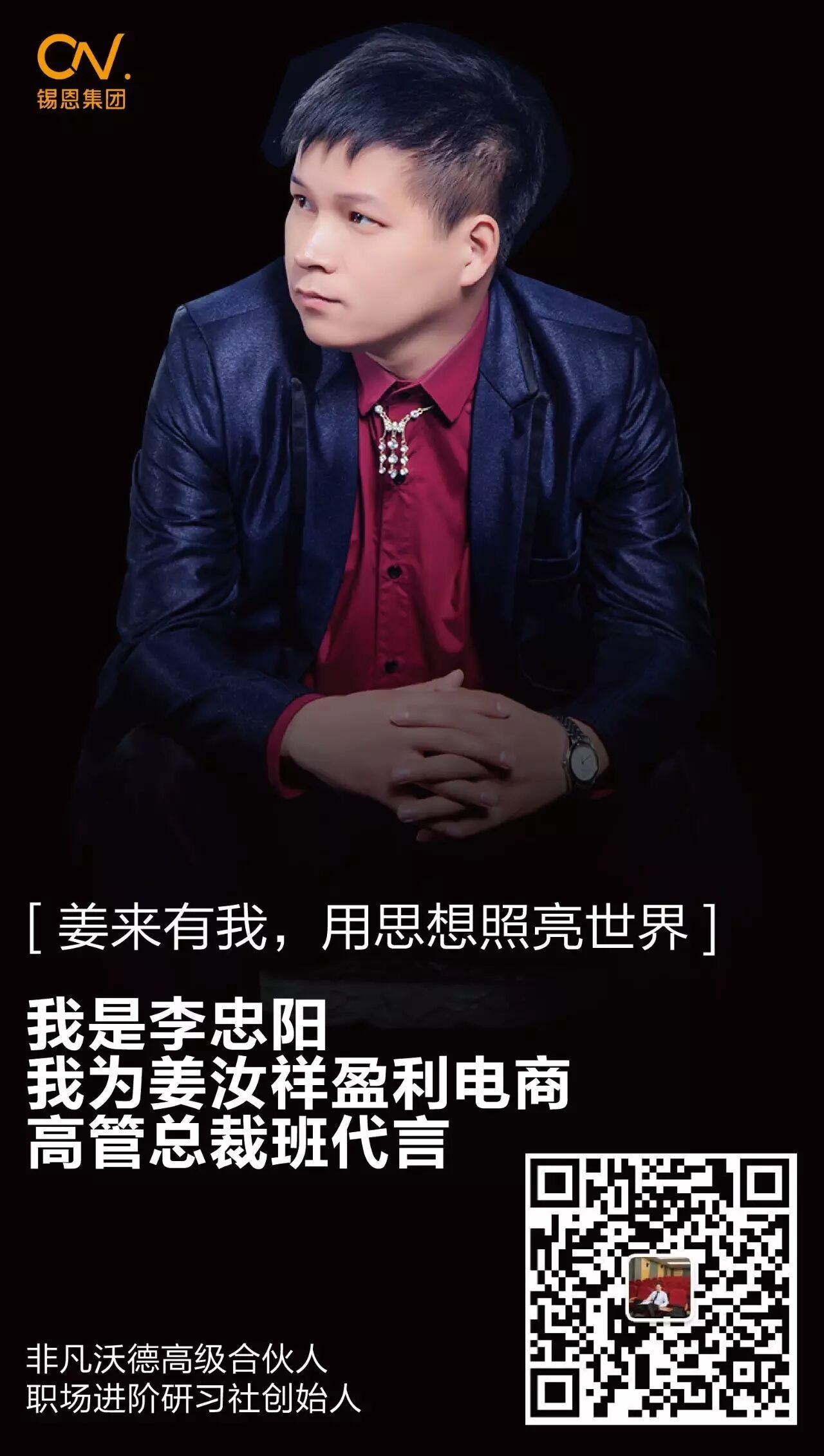 每一个时代都在创造着自己的代言人,锡恩集团,中国咨询培训业的领跑者,在新的时代,推出了“传统企业电商转型高管总裁班”,其中的一批优秀学员,成为锡恩集团姜汝祥博士的课程合伙人,成为传统企业电商转型高管总裁班代言人