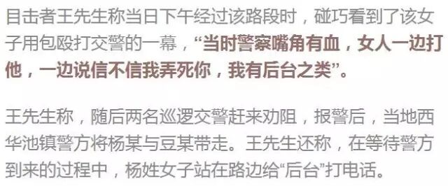 据多名网友爆料,2月11日下午两点左右,,一名杨姓女子当街殴打执勤交警,并称“我是孕妇你敢打吗?”