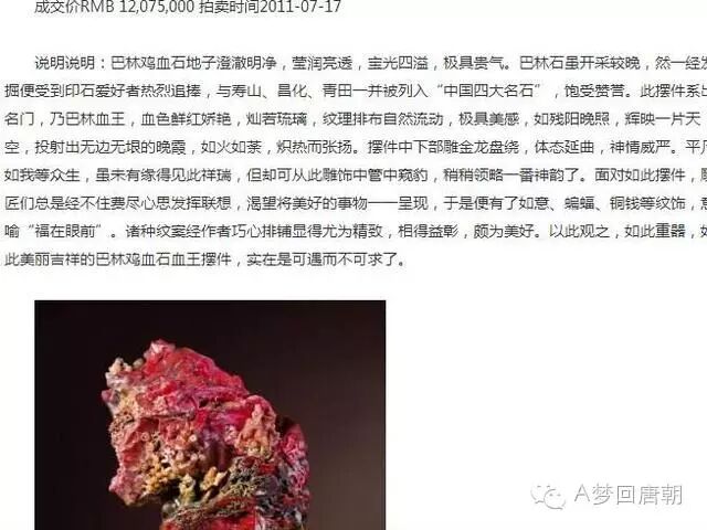 在巴林右旗的巴林石博物馆中,一块“巴林鸡血王”,2015年市场的估价为6亿元人民币。