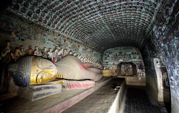 莫高窟第17号洞窟,这是一个中国人永远耻辱的地方。这个洞窟看似非常小,它却被称为“藏经洞”,在西夏王朝时期为了躲避战乱保护文献资料,僧侣们将上万经卷掩藏在此,直到1900年被一个住持在莫高窟的道士(王圆禄)发现。此后英国探险者斯坦因来到莫高窟,巧言令色仅用4锭马蹄银诱骗王道士,就换走了大部分经书,至今保存在大英博物馆内。