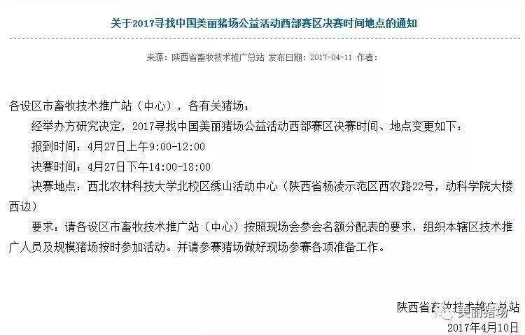 安佑杯2017寻找中国美丽猪场公益活动西部赛区PK赛即将在陕西咸阳杨凌农业高新技术产业示范区拉开帷幕。在此之前,属于西部赛区的陕西、宁夏、四川、重庆、甘肃、青海、西藏、新疆、贵州、云南等地的猪场纷纷通过网络、地方畜牧站等平台踊跃报名参与。与此同时,一支集合了组委会工作人员、地方畜牧站及公益企业技术人员的队伍正在杨凌集结。