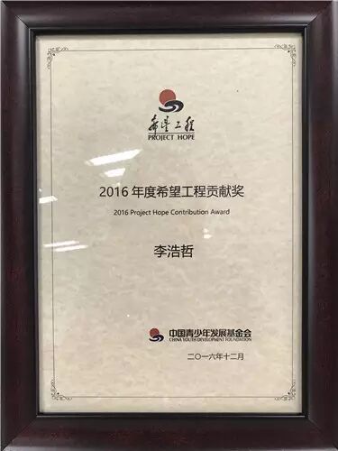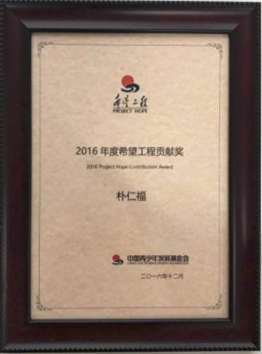 近日,斗山公司凭借多年来对希望工程的长期持续投入获得由中国青少年发展基金会颁发的“希望工程贡献奖”荣誉称号。同时,李浩哲总裁、朴仁福部长、赵光主任也获得了个人“2016年度希望工程贡献奖”。