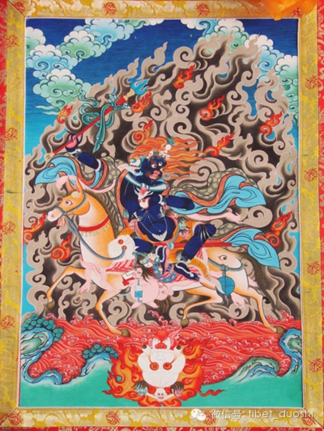 如胜乐脚踩造物主湿婆与时间女神,手持大梵天的血淋淋的首级,大威德脚踩梵天、湿婆、维修奴、因陀罗、六面童子、象头魔、日神、月神等印度教八大天神。