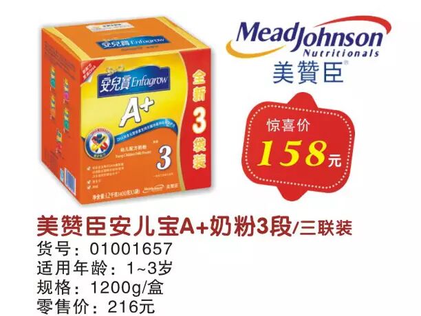 | 美赞臣安儿宝A+奶粉3段/1-3岁/三联装 | 1200g | 203 | 158 |