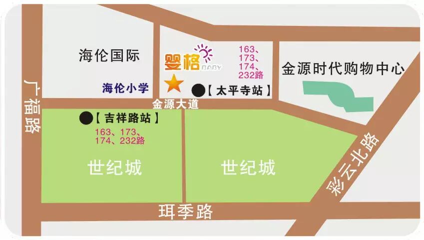 金源店地址:世纪城金源大道与吉祥路交叉口海伦国际婴格金源店(海伦小学对面)