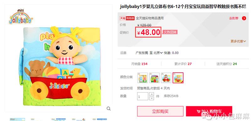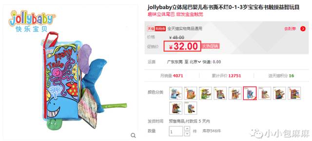 很早之前我给妞们推荐绘本时就说过“宝宝会趴以后就可以给ta一本布书,趴着看,色彩鲜艳刺激ta的感官”。之后就经常有妞在后台让我给推荐一些好玩的布书,可以让口欲期的宝宝们随意撕、任性啃。其实,对于布书的选品包妈既希望给妞们找到一些好玩、益智、质量不错的,又希望能便宜性价比高一些。俗话说好事多磨,现在终于给妞们找到满意的品牌啦!就是林志颖、Baby家的明星宝宝们都在读的Jollybaby布书,图案新颖,颜色丰富,还有响声吸引宝宝,连大人都觉得好玩,而且价格便宜,性价比超高哦。