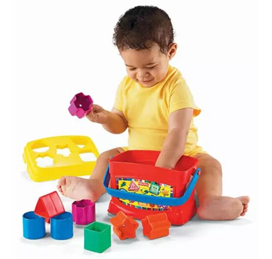 还是费雪架的玩具----启蒙形状配对积木盒。把积木放进盒子里,再倒出来。反反复复不仅能锻炼宝宝的手指精细运动技能,鲜艳的色彩有利于刺激宝宝的感官发育,可以教宝宝认识积木的形状,进行积木的形状配对,锻炼宝宝的手眼协调能力和逻辑思维能力。