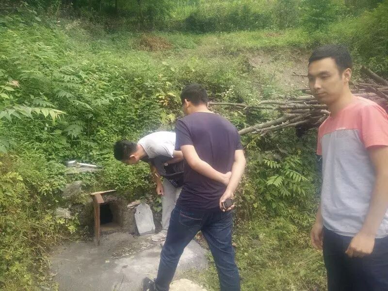 工作组一行在抓点领导、驻村干部和村社干部的陪同下一路翻山越岭,对大院村位于山上的几个社寻找可以用于架通自来水的水源,并实地查看了实施人饮工程的基础条件,做了前期初步规划。