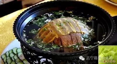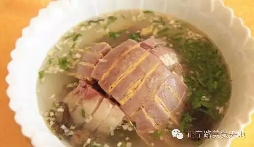 天水杂烩是把鸡蛋清和蛋黄搅匀,摊成薄饼。取鲜五花肉剁碎,放入盐、粉面、花椒后拌匀,加在两层薄蛋饼中间压平,上笼蒸熟,切成条形,便做成夹板肉。以夹板肉为主,配以响皮条、丸子,浇上鸡汤,撒上葱花、香菜、木耳等,盛入汤盆,量足汤多,荤素搭配,边喝边吃,不油不腻,味道鲜美。