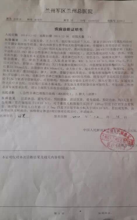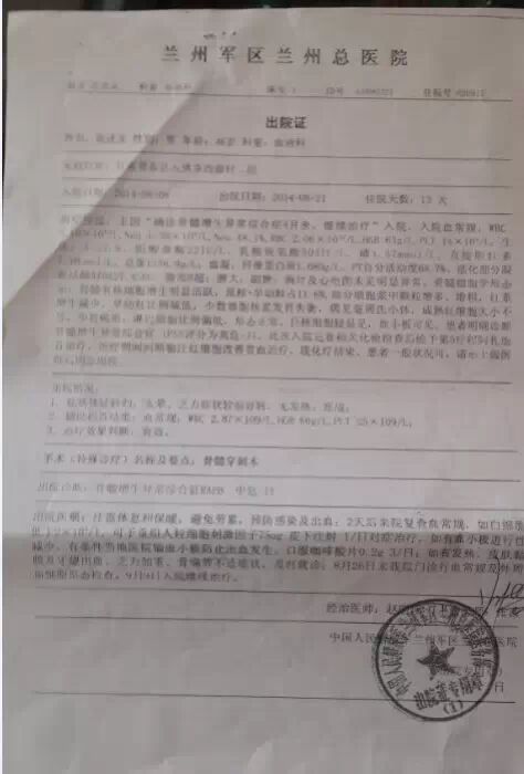 我叫张雅丹,现就读于兰州商学院,弟弟张聪祥,就读于 山东科技大学 ,我俩均为在校大学生。父母虽为农民,此前我们却也是个幸福的四口之家,由于家中只有一亩三分耕地,无力支撑我和弟弟上大学的费用,所以父母靠打工养家并供我们上学。 孰料天有不测风云。父亲(张述录,47岁,甘肃省景泰县伍佛乡西源村,身份证号620423196709144415)于2014年2月份查出患有白血病,母亲在家照顾父亲,家中没有了经济来源,为了治疗至今已花去家中所有积蓄,且已债台高筑。骨髓移植是父亲康复的唯一希望,手术拟将在2015年1至2月份进行,现在已配型成功,但近30万元的手术费,家庭实在无力筹措。父亲几十年如一日,含辛茹苦地将我们养大,还没来得及孝敬他老人家,却遭此恶运,对我们姐弟来说无疑是天塌地陷。