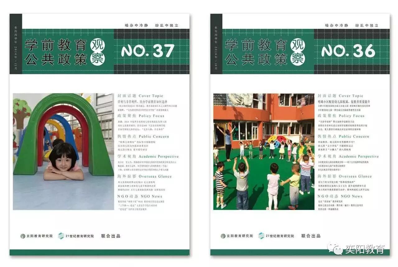 《学前教育公共政策观察》创刊于2009年5月,为季刊,是奕阳教育研究院与21世纪教育研究院合办的学前教育公共政策刊物。本刊立足行业特点,定期收集整理学前教育公共政策新闻与资讯,为高校、科研机构、教委研究人员、管理者、政策制定者以及幼儿园、幼教企业管理与教学研究人员等全面了解、把握学前教育的政策动态、趋势变化、观点事件等提供支持与参考。
