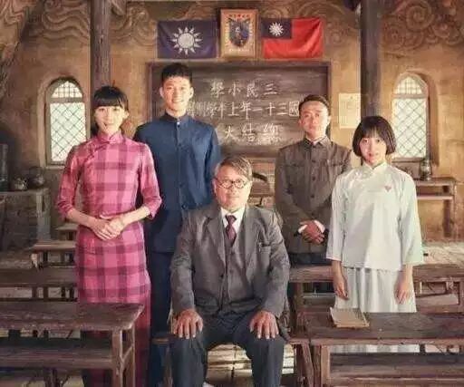 初看之下,舞台上道具搭建的如同电影拍到一半的内景棚:刷得灰白的墙上挂着块黑板,上面歪歪扭扭的繁体字迹从右至左写着“三民小学”、“民国三十一年上半学期期末总结大会”,讲台上空无一物,两张刻痕累累的木头课桌拼在一起,油漆斑驳脱落到几乎看不出原本的绿色,上面按不同的方向摆着四只样式一致、边缘已经破损的白色搪瓷杯,还有写到一半便搁下的纸和笔,破旧的坐凳零落四散着。这一切的上方,暗红色的灯光隐隐约约映照出一圈围栏和一株老树的枝丫,多了一点不同寻常的舞台剧意味。