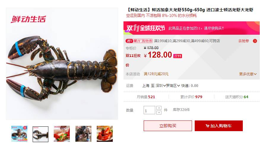 【鲜动生活】鲜活加拿大龙虾550g-650g 进口波士顿活龙虾大龙虾】复制这条信息,打开手淘¥AAWwircE¥