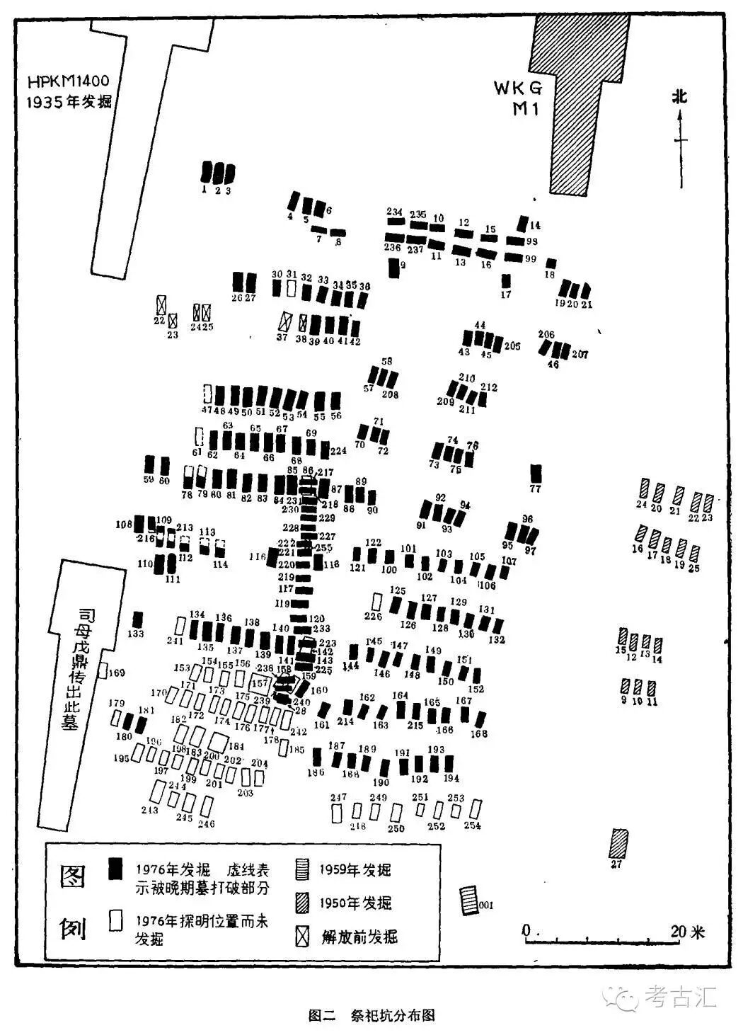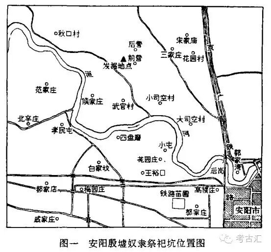 安阳殷墟历年发掘祭祀坑位置分布图(《安阳殷墟奴隶祭祀坑的发掘》《考古》1977年第1期)