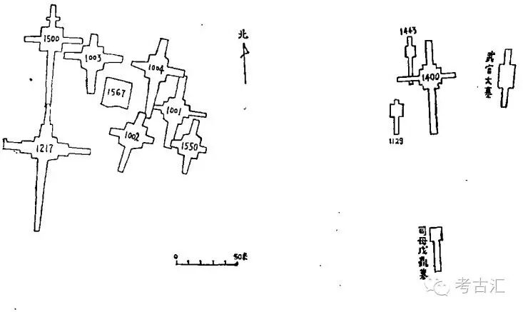 安阳西北冈大墓分布图(《安阳殷墟西北冈大墓的分期及有关问题》,《中原文物》1981年第3期)