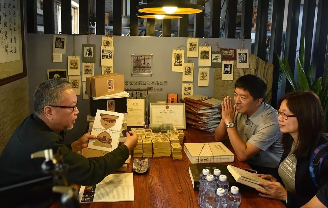 甘肃教育出版社社长王光辉热情地向前来参观的各位客人介绍了读者晋林工作室的基本情况,以及甘肃教育出版社近些年在数字出版和融合发展方面积极努力。徐老师在书籍装帧设计方面的创意和才华,通过对传统图书的创新,在设计创意、印刷材料、印装工艺方面求新求变,寻求传统出版在多领域内的附加值延伸。