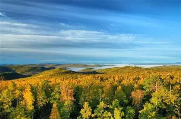 大兴安岭的初秋,红色的柞树叶夹杂着绿色的针叶和白桦,清晨天刚刚亮起的时候,山腰间还缠绕着白雾,空气中都是野果的香气,极其清爽舒适。
