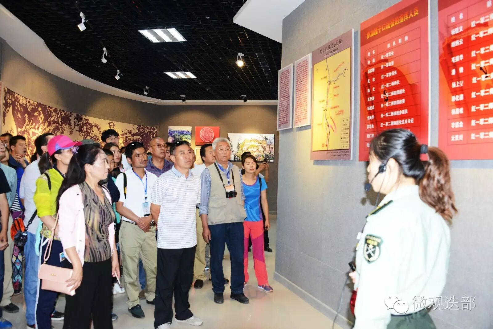 ,省、州、县专家学者、、中新社、光明网等各大媒体70余人重走长征路,,参观腊子口战役纪念馆,并在纪念碑前敬献花篮、重温入党誓词。