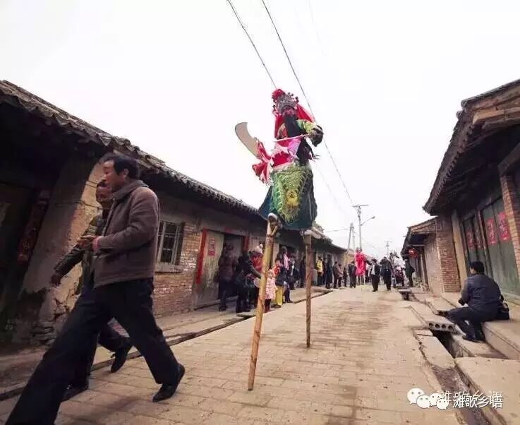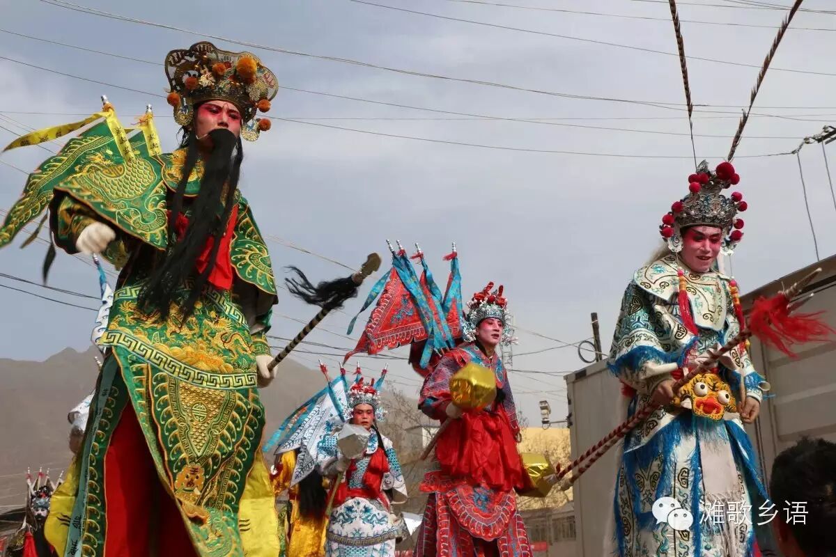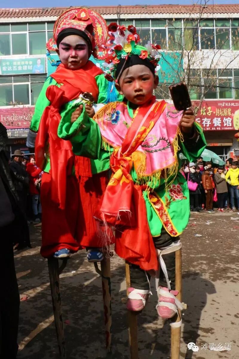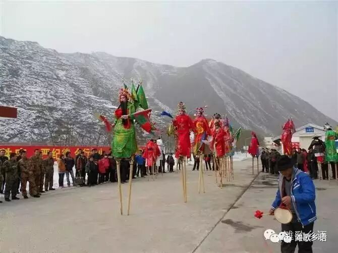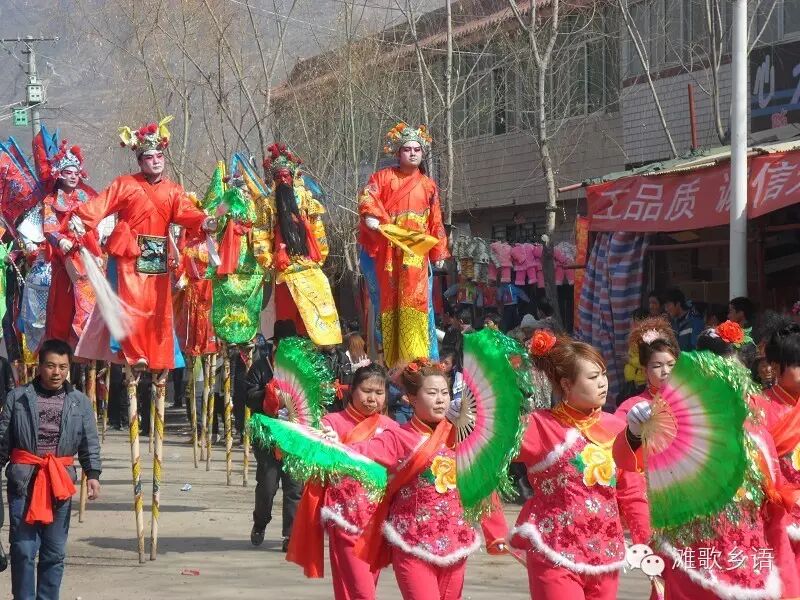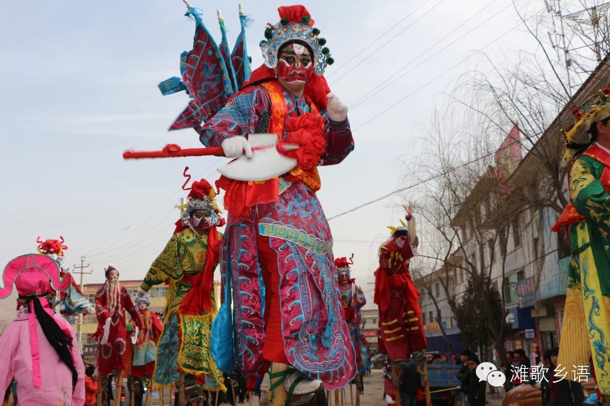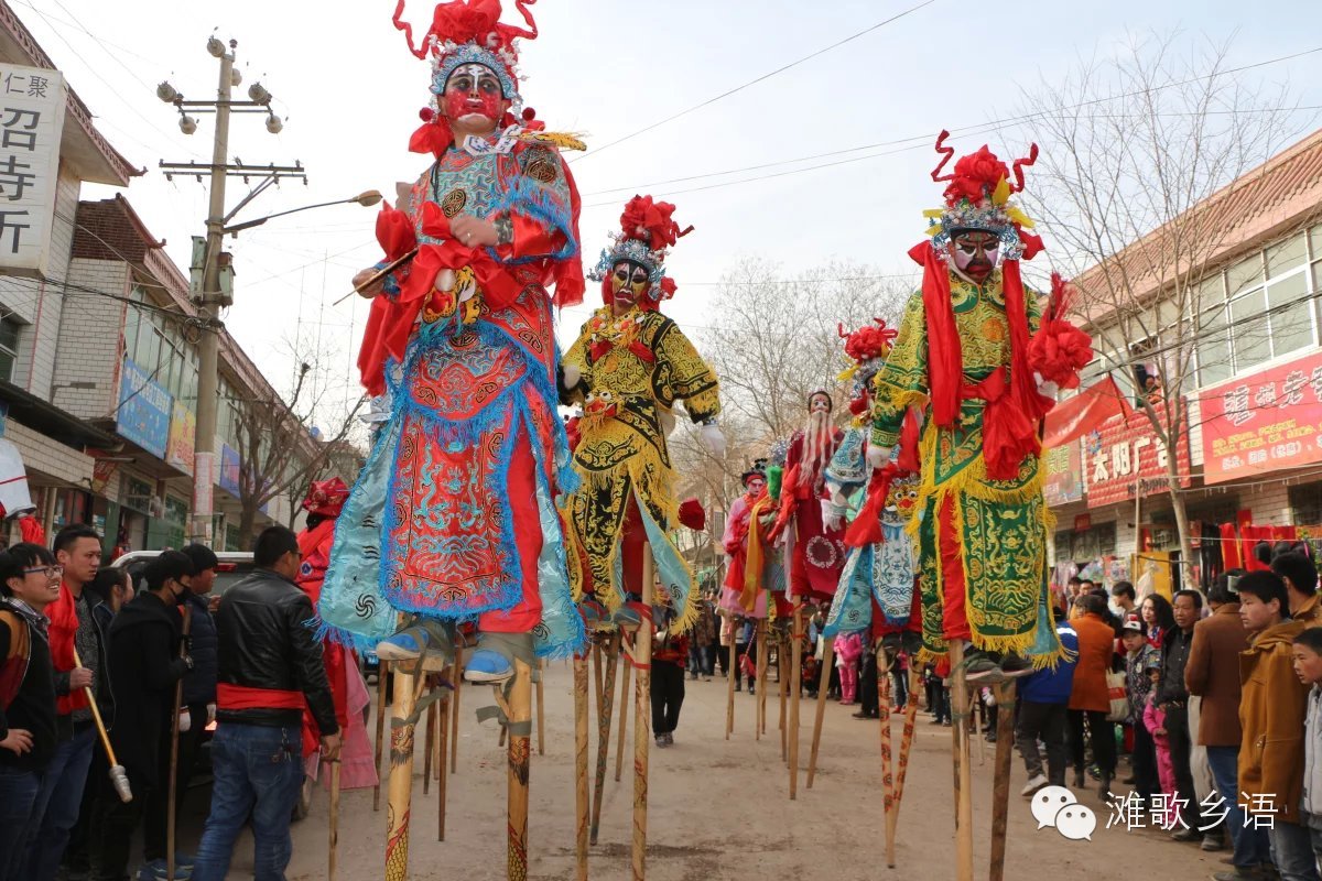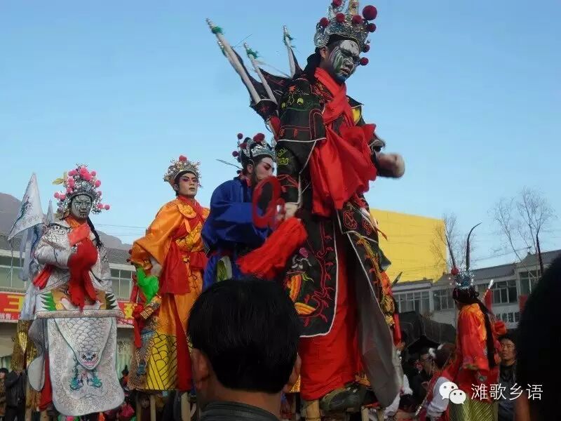 滩歌古镇的秧歌队中必不可少的表演队伍——高脚子。高脚子是脚踏着长木跷进行表演,所踩长木高越1.8米以上,多为青壮年表演,技艺性强,形式活泼多样。由于表演者踩跷比一般人高,便于远近观赏,而深受群众喜爱。高跷,由于表演者要高出一截,观众需要仰起头来或是站在高处观看,所以滩歌人称为“高节子”。这种活动在武山滩歌镇境内甚为普遍,是一种群众欢度春节的民间文艺活动形式。滩歌的“高节子”表演形式多种多样,五花八门,不拘一格。表演“高节子”的时间,一般都在农历正月初八到正月十五。扮演的身份主要是戏曲人物,最前面的是领队,也是戏曲中最重要的人物,最后是由丑汉压阵。表演首先要扭出各种姿势,表演特技主要是盍拐、碰拐。这种活动内容机动性大,行动比较自如,可以在大场中表演,也可走街串巷。