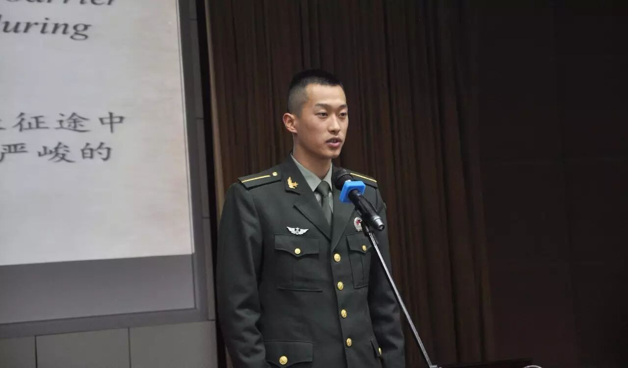 近日,武汉军械士官学校第七届英语演讲比赛决赛在学校图书馆学术报告厅拉开帷幕。9名参赛选手以“不忘初心,继续前进”为主题,沿着80年前红军长征的足迹,一路“突出重围”、“血战湘江”、“四渡赤水”、“爬雪山,过草地”直到“胜利大会师”。,再现了红军将士创造出的这气吞山河的人间奇迹。