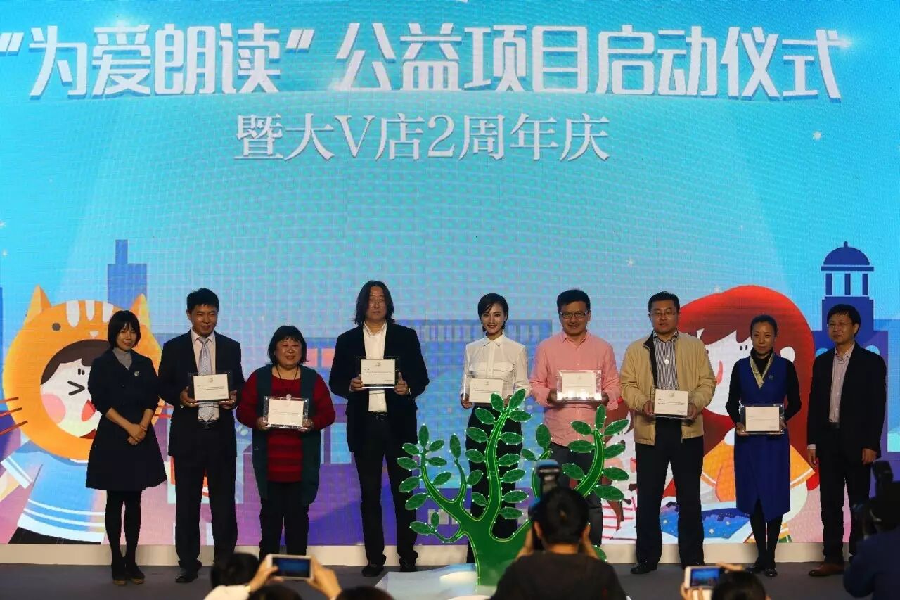 洪泰基金创始人盛希泰、「免费午餐」发起人邓飞、国家图书馆少儿馆馆长王志庚、著名阅读推广人孙慧阳、著名阅读推广人李一慢、著名儿童文学作家彭懿、台湾著名儿童文学作家余治莹、著名影星王媛可、著名影星冯文娟、及大 V 店创始人哈爸等成为首批「为爱朗读爱心大使」,并在活动现场获颁证书。