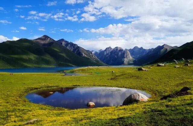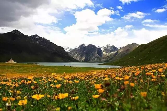 这一地带有大大小小的海子300多个,每年7月,鲜花遍布,碧蓝的湖水倒映着雪峰,山脚下花草荡漾,山间雾霭缭绕,如同人间仙境,世外桃源。