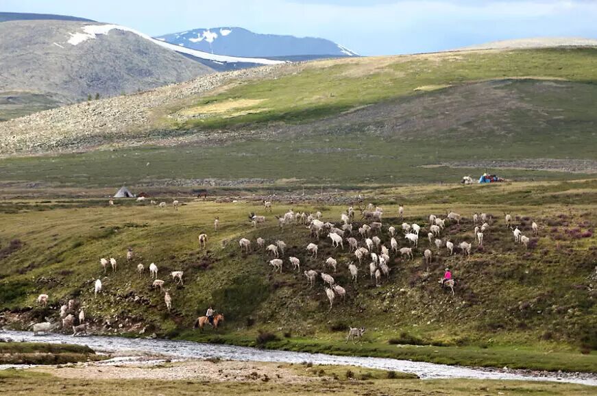 全年严寒的气候使得开阔草地散落于高山草甸的各个地方。驯鹿非常怕热,因此夏天的时候它们需要去高地草原上吃草
