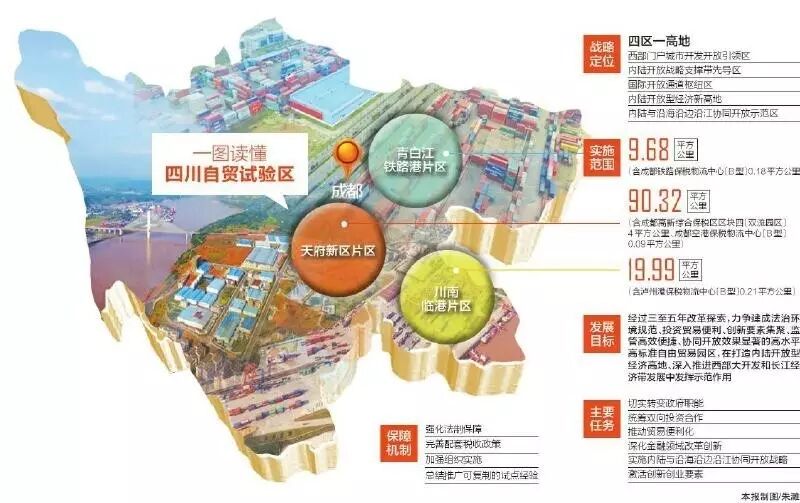 四川自贸试验区涵盖了成都天府新区片区、成都青白江铁路港片区、川南临港片区三大片区,总面积119.99平方公里。
