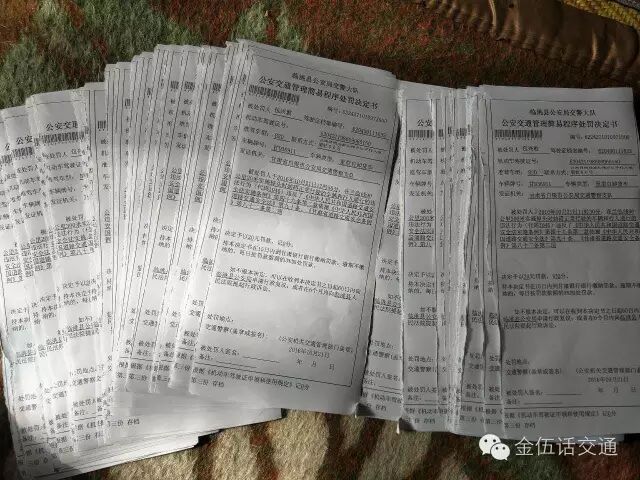据当事司机叙述,同行两台自卸车运输货物,途径临洮县境内时,被执勤交警拦截,认为车厢栏板加高,吓唬司机每车罚款2000元记6分。两司机好话说尽,交警算是开恩罚款降至1500元不记分,同时以“实施掉头妨碍正常行驶的车辆和行人通行”各开出每张20元处罚决定书共计75张,才放行了车辆。