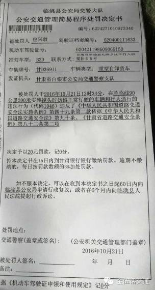 车辆加栏板违法行为如查证属实,按照,无记分依据。而临洮交警不知道依据的是哪门子法不得而知?