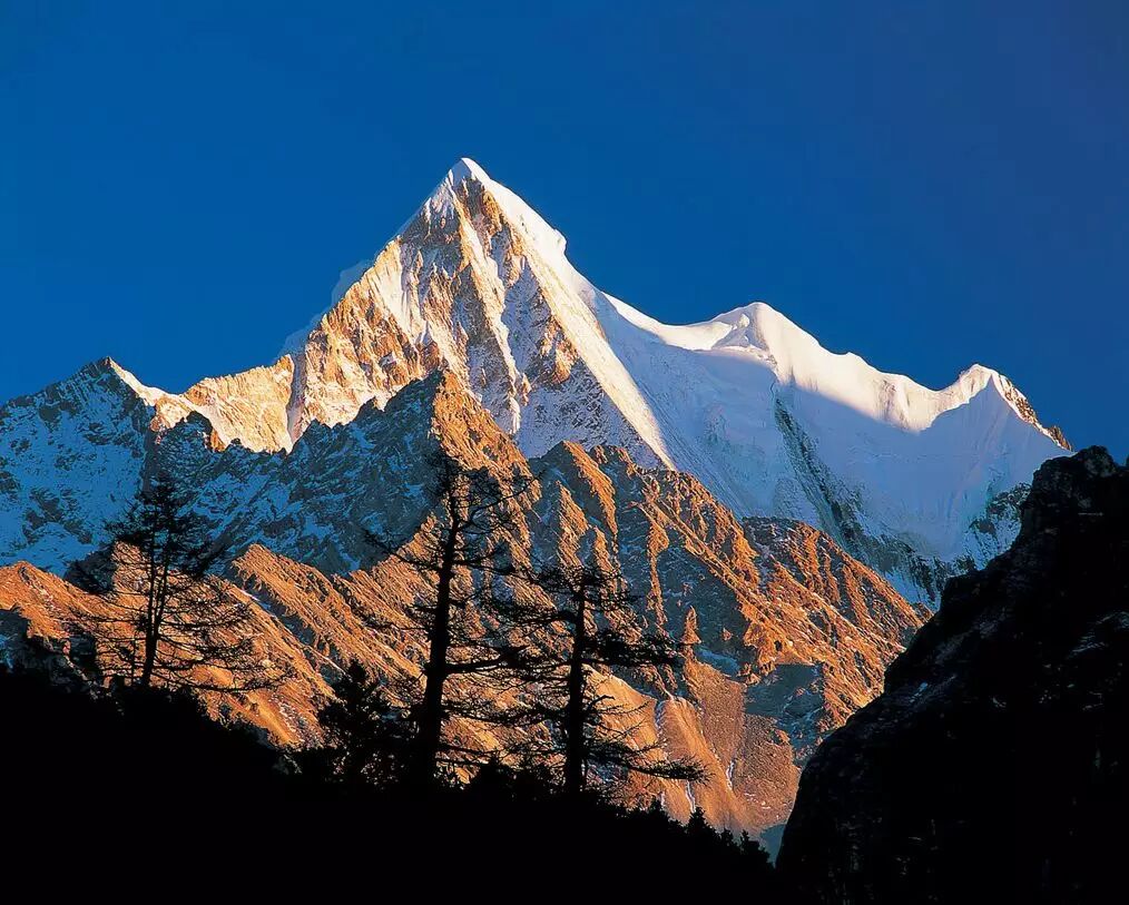 在群山如云的川西,四姑娘山被誉为"蜀山皇后"。从成都出发,乘车向西北行经都江堰、卧龙到日隆,全程245公里。四姑娘山以雄峻挺拔闻名,山体陡峭,直指蓝天,冰雪覆盖,银光照人。山麓森林茂密,绿草如茵,清澈的溪流潺潺不绝,宛如一派秀美的南欧风光,人称"东方的阿尔卑斯"。