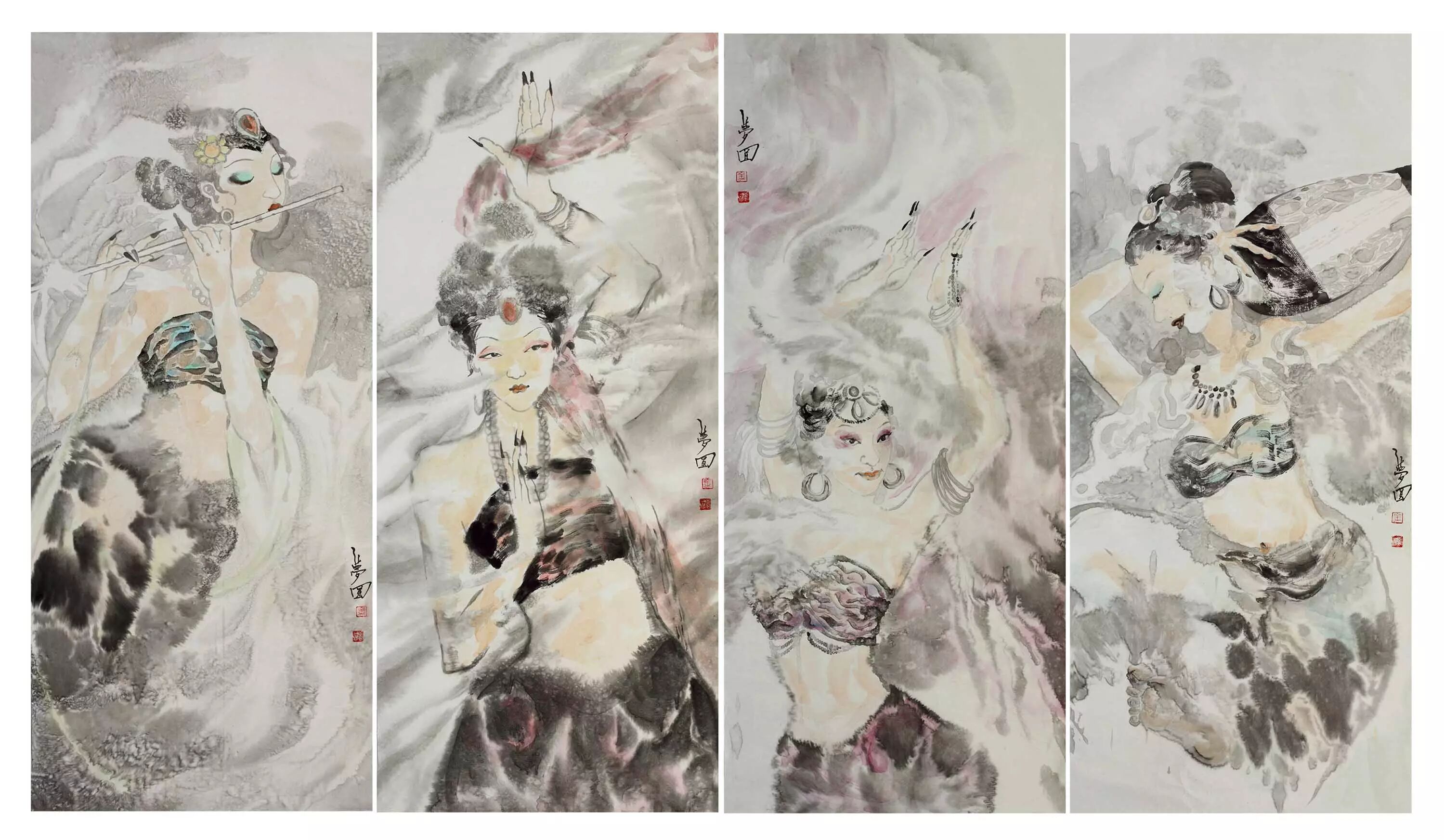 司子鸣、张丹、金梦圆的人物画生动细腻,